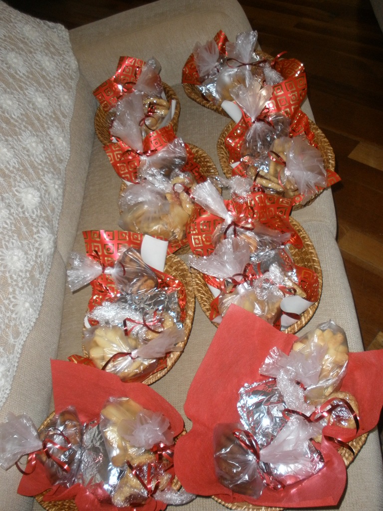 This year when I was trying to figure out what to buy my friends for Christmas, I was perplexed. The more I thought about it the more I decided I did not want to buy them gifts. I wanted to make them. (Terry—this is where you should stop reading if you want to be surprised.) I ended up buying some baskets at the pazar and filling them with baked goods. Here they are in all their glory.