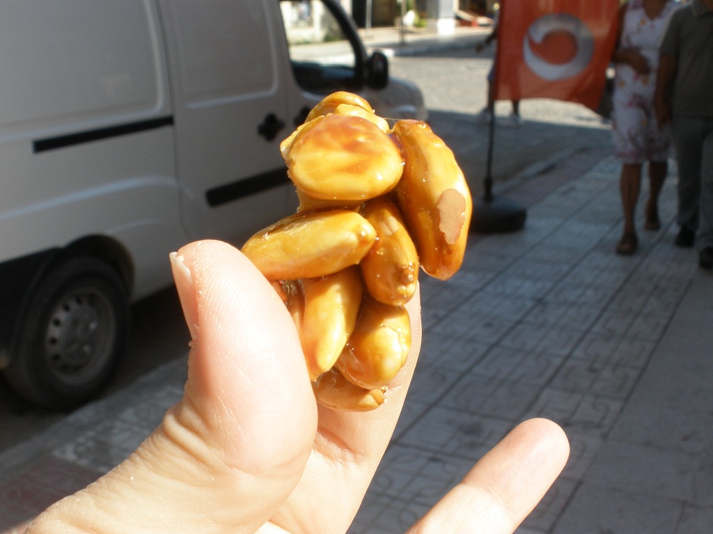 The other day the whole family took a trip to the nearby town of Datça.  It is about an hour down the peninsula.  The ride is spectacular, through the mountains with the Aegean on one side and the Mediterranean on the other.  We just wanted a change and to do a little sightseeing.  Datça is harder to get to a much more isolated than Marmaris.  While it does have a tourism trade the town is less built up, with fewer bars, and none of them blasting dance music to attract business.  In our mind this was a big attraction.  There were some lovely natural food stalls, where we bought some yummy raw almonds, organic capers and this lovely treat.
